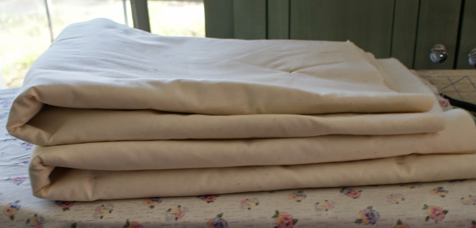 Then that piece of fabric they are laying on...that is the backing for that religious quilt I am doing...going to put that together today and get it ready to quilt.